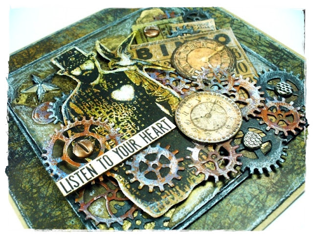 Beautiful steampunk card to receive, I love all your cards layer and color. Thank you for showing us on SanDee&amelie's Steampunk Challenges. Hugs, Susan